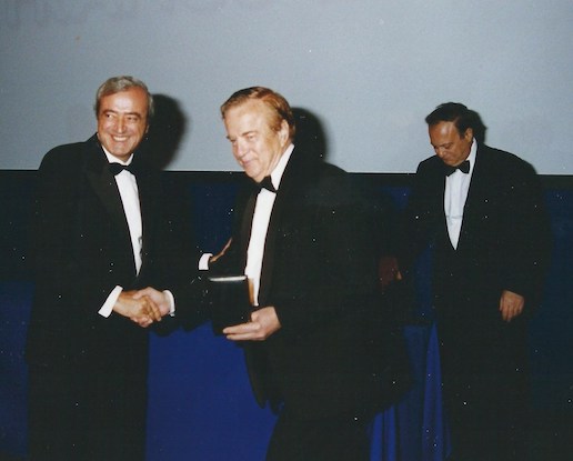 New York 1994. da sinistra: Antonio Martino,all'epoca ministro degli Esteri, consegna il Premio Italia nel Mondo a Franco Zeffirelli. Sulla destra Corrado Prisco |